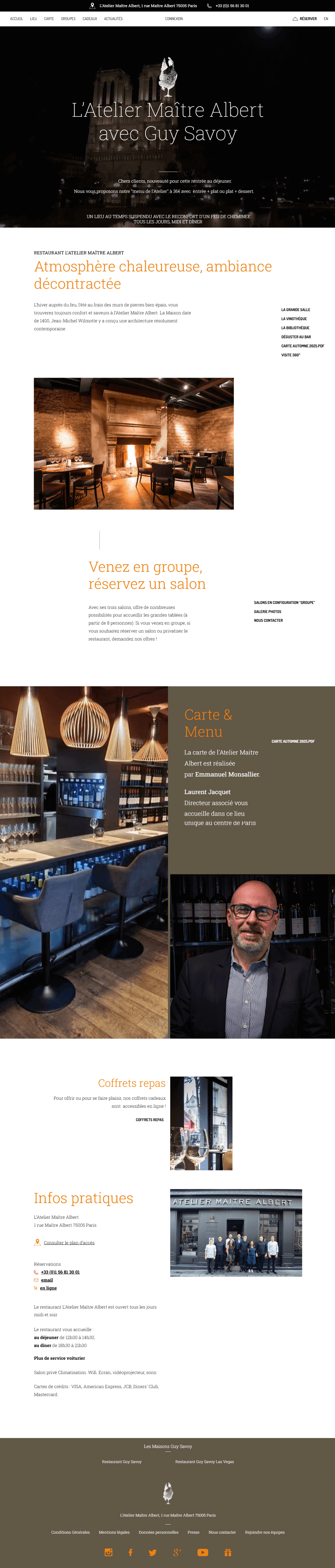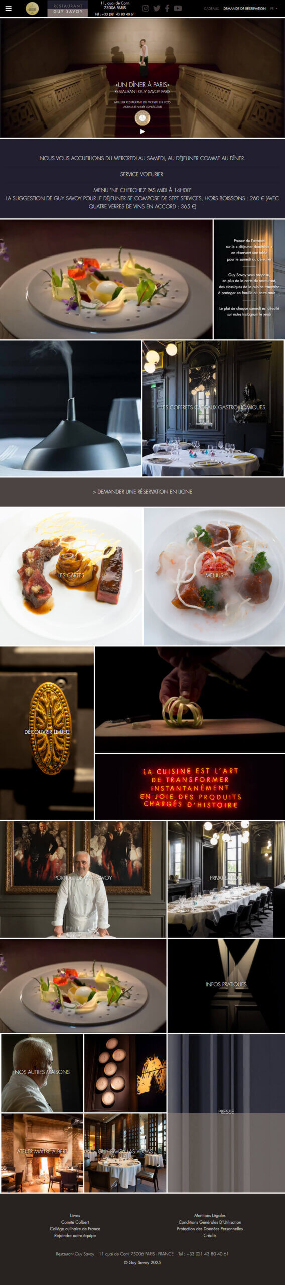 Dans une collaboration basée sur le respect et la confiance, Guy Savoy et ses équipes, nous confient les évolutions du site internet du restaurant multi étoilés au guide Michelin et pour la 8ème année consécutive, couronné meilleur restaurant du monde par La Liste en 2025.