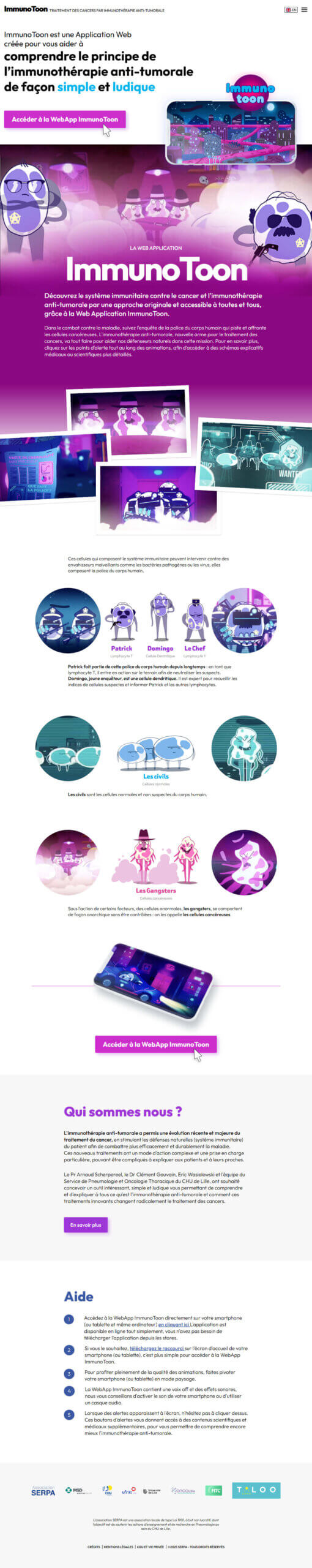 Tiloo Digital accompagne l’Association SERPA dans la conception et réalisation du site et de la web application ImmunoToon.